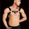 This sophisticated harness elevates style and functionality with its carefully engineered design. Crafted from durable bonded leather, it features two robust metal O-rings connected by a central strap, ensuring both resilience and visual appeal. The harness is equipped with two wide, bonded leather straps that contour the body, providing a secure and customizable fit for various body types.