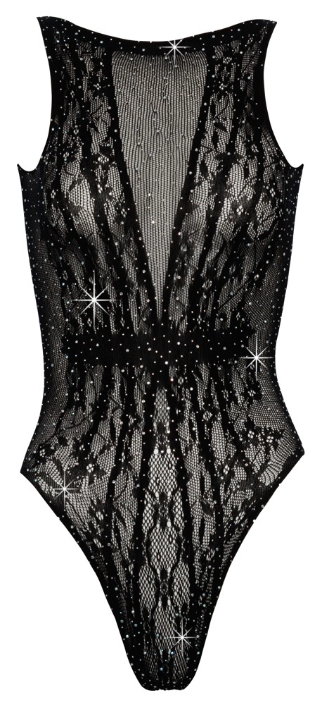Discover the dazzling elegance of the Cottelli Collection Body Fantasy S-L – a striking one-piece designed to capture attention with its exquisite details. Crafted from high-quality, semi-transparent stretch fabric, this model is adorned throughout with sparkling rhinestones in various sizes, creating a shimmering effect that stands out in any setting. The woven tendril-inspired pattern at the front adds a touch of artistic flair, while the beautiful cut-out on the upper back introduces a modern, stylish accent.