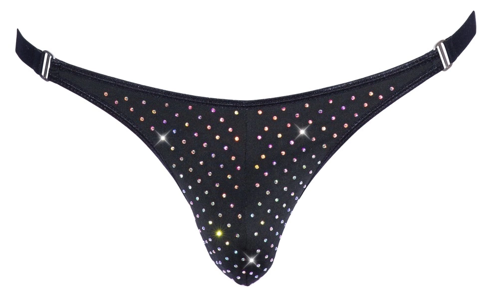 Discover the Svenjoyment Men’s Stretch String S – a striking, modern accessory designed for those who appreciate bold style and comfort. This black string model features an exclusive arrangement of radiant, multi-coloured rhinestones at the front, adding a refined touch of sparkle and contemporary elegance. Crafted to combine both aesthetics and practicality, the string boasts a highly elastic material blend, ensuring a snug yet flexible fit for all-day comfort.