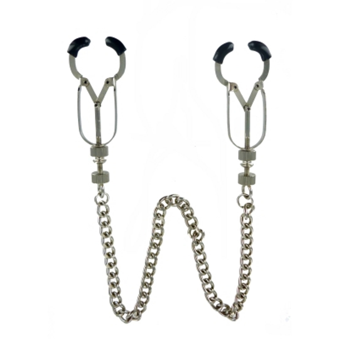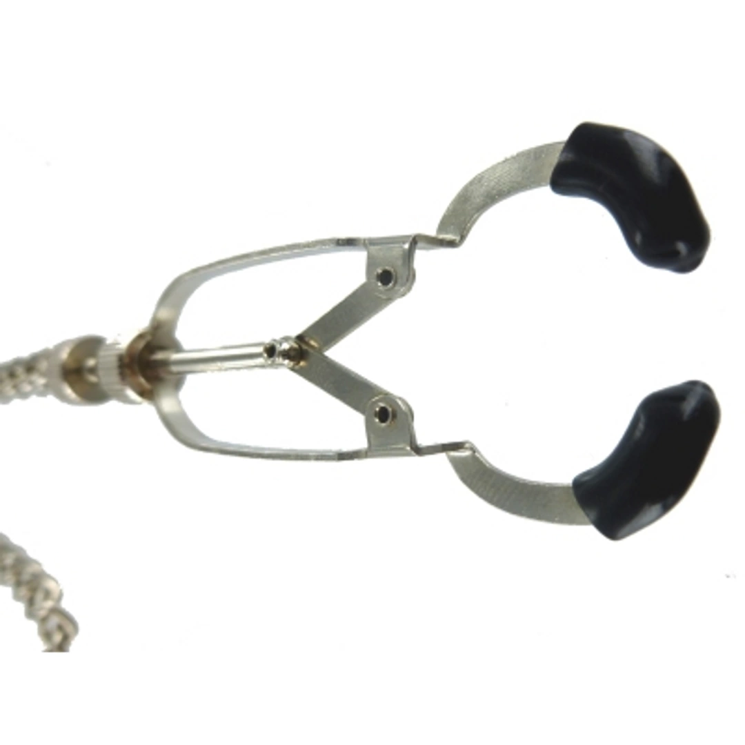 Connecting the pair is a durable 30 cm (12 inch) metal chain, providing both a visual accent and practical linkage between the two clamps. The chain is crafted for added resilience and elegance, making it an eye-catching addition to your collection of intimate accessories.