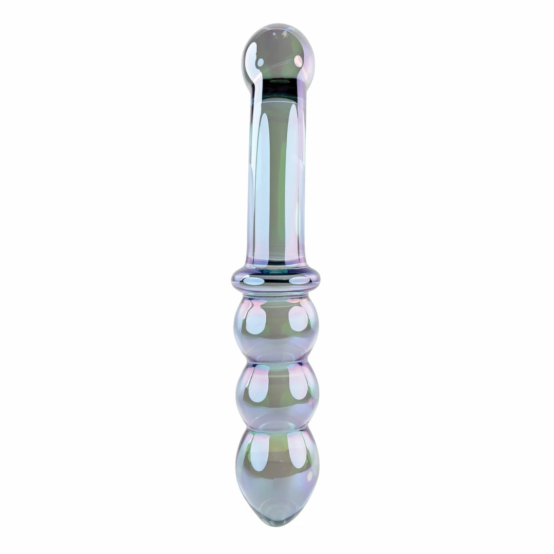 Introducing the Evolved Shiny Wand Galaxy, a refined glass personal massager crafted for those who value sophisticated design and exceptional functionality. Manufactured from durable, hygienic borosilicate glass, this model combines an elegant iridescent blue, green, and violet finish with a thoughtfully contoured shape.