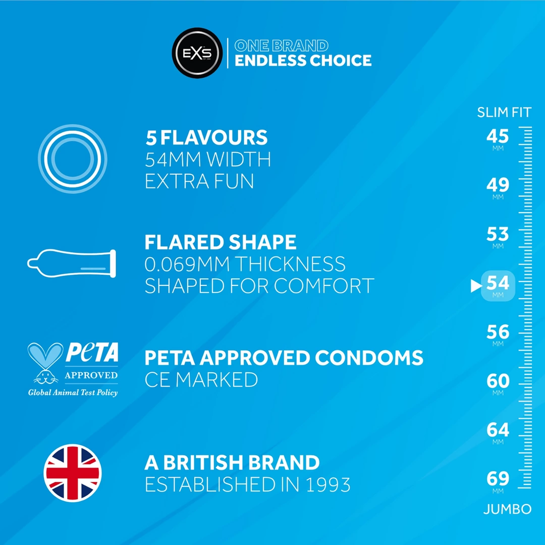 EXS Mixed Flavoured Condoms 500pcs – Cola, Bubblegum, Strawberry, Banana, Chocolate