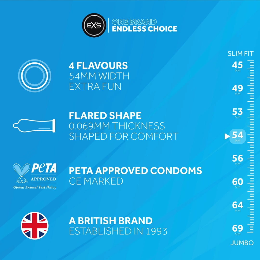 EXS Mixed Flavours Latex Condoms 48-Pack – Variety Aromatic Selection