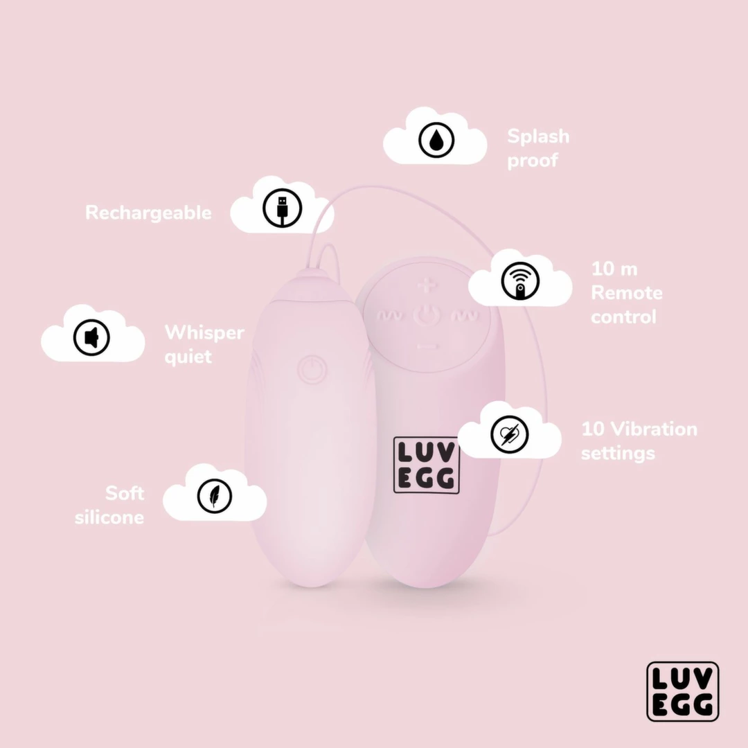 LUV EGG Pink Wireless Silicone Vibration System, 12 Modes, Waterproof