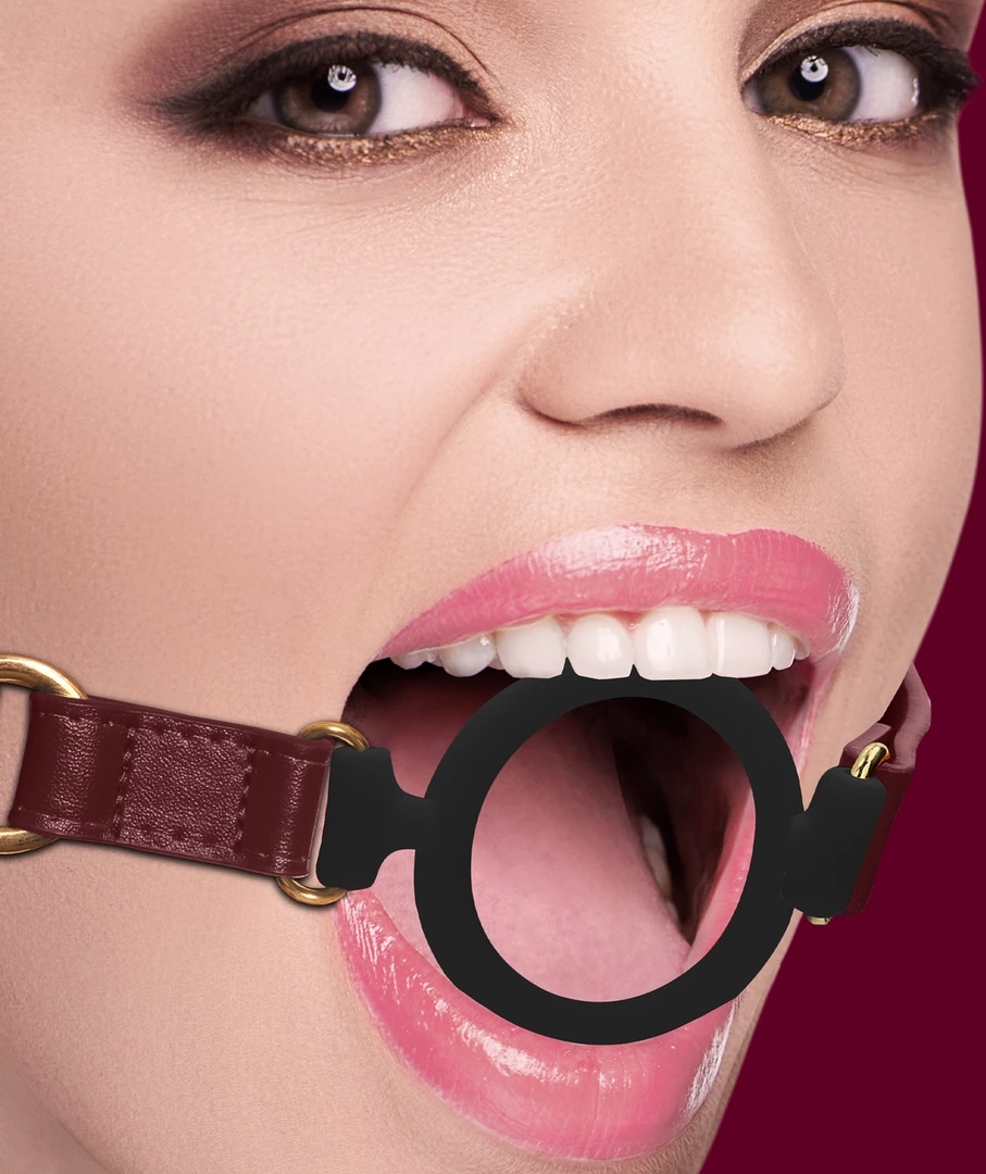 This open ring gag is engineered from high-quality, body-safe silicone, ensuring a comfortable fit and easy maintenance. The adjustable strap offers a secure and customizable experience, accommodating various head sizes with ease. The luxurious gold hardware and elegant black finish make this piece stand out in any setting, blending durability with modern aesthetics.