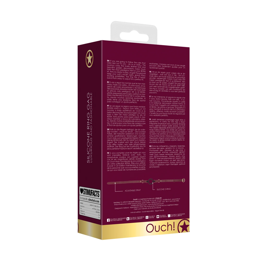 Discover a sophisticated and visually striking addition to your collection with the Ouch Halo Silicone Open Ring Gag. Designed for those who appreciate refined style and comfort, this model combines a sleek black silicone ring with premium faux leather straps and gold-toned metal accents, creating a visually appealing accessory for any scenario.