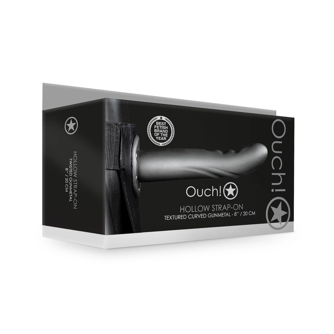 Discover innovative design and reliable performance with the Ouch! Textured Curved Hollow Strap-On.