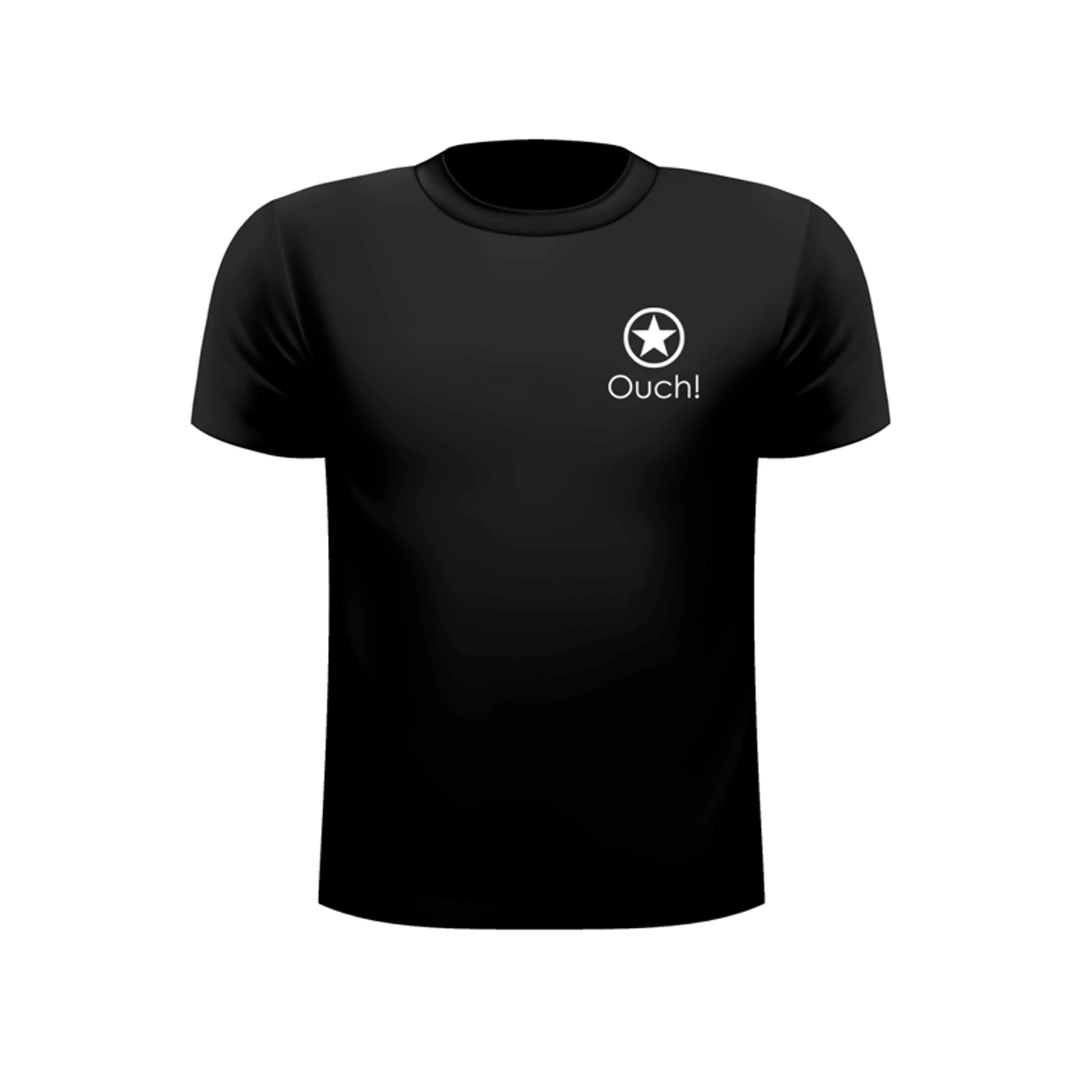 Designed for both comfort and durability, the Ouch! Unisex T-Shirt in classic black is an ideal addition to any wardrobe. Crafted from soft, breathable cotton, this large-size T-shirt offers a relaxed fit suitable for various body types. The stylish Ouch! logo on the chest provides a subtle yet distinctive accent, making it perfect for casual outings, events, or everyday wear.