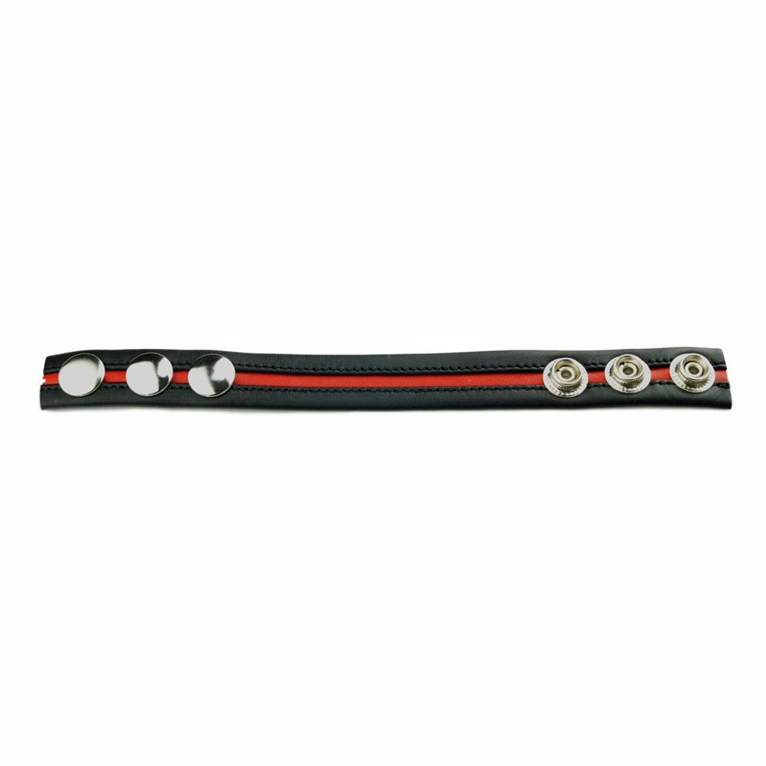 Manufactured from genuine leather, this adjustable strap is equipped with three robust snap fasteners, providing a secure and customizable fit. The versatile design allows the wearer to select their preferred level of tightness, ensuring comfort and adaptability for various uses. Its sleek, minimalist look is ideal for pairing with other leather accessories from the same collection, creating a coordinated and polished appearance.