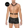 Discover a statement piece from Rimba, engineered for both style and versatility. This leather harness features robust black leather straps and a sturdy metal-buckle collar, designed for a bold and confident appearance. The harness delivers an adjustable fit and can be worn over clothing or directly on the body for a distinctive, commanding look.