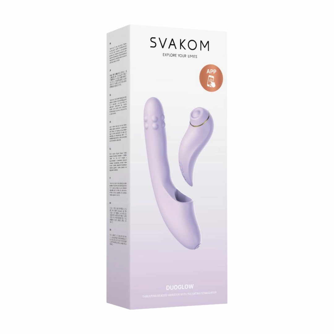 Discover advanced comfort and convenience with the Svakom DuoGlow App-Controlled Intimate Device in elegant purple. Designed for versatility, this innovative 2-in-1 model offers a unique combination of detachable components and smart control, allowing for personalized experiences and seamless integration with your digital lifestyle.