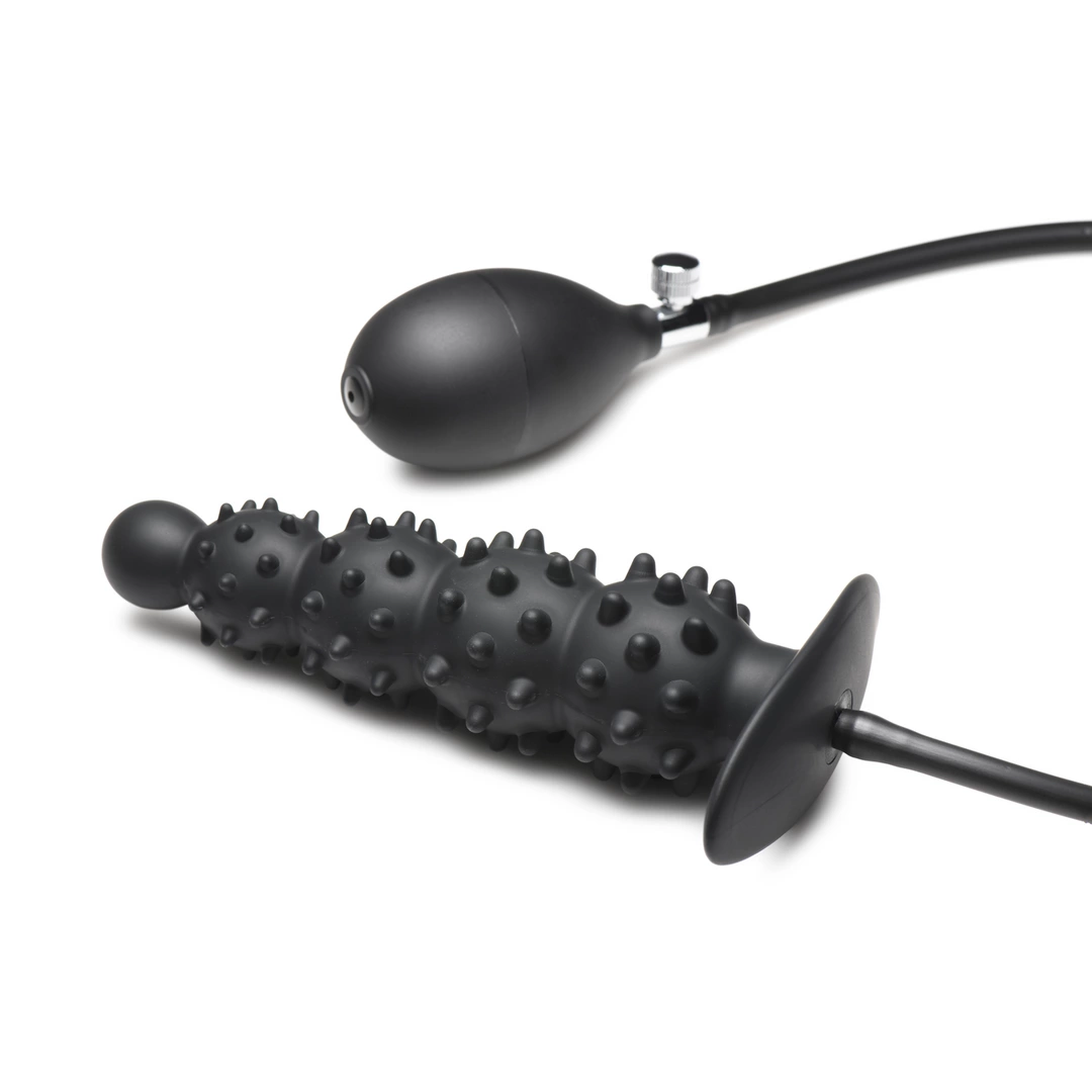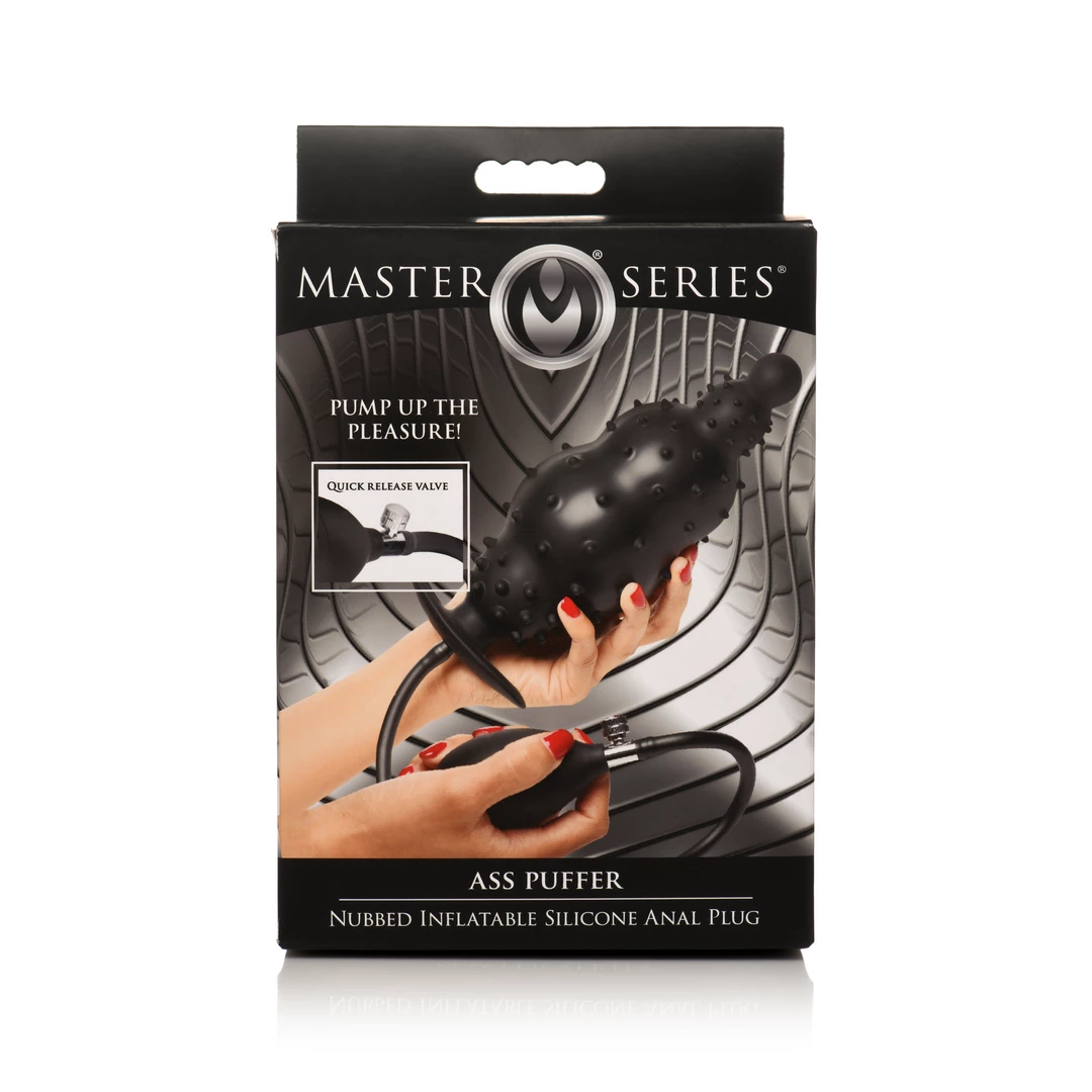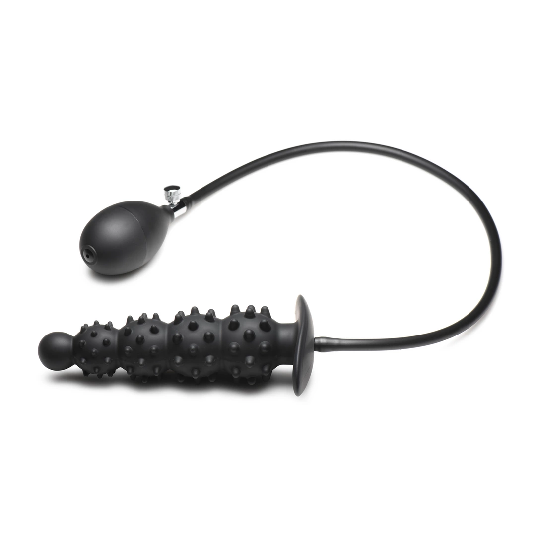 Discover innovative comfort and versatility with the XR Brands Ass Puffer Nubbed Inflatable Silicone Plug in Black. This advanced intimate system is expertly crafted for those seeking a customizable fit and a modern approach to personal exploration. Designed with a unique combination of graduated bulbs and textured nubs, this model offers a tailored experience, adapting to your individual preferences.