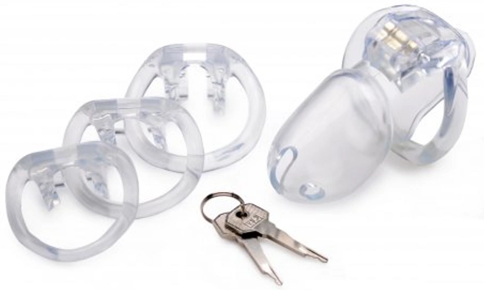 XR Brands Clear Captor Chastity Device Small – Transparent ABS, 4 Rings