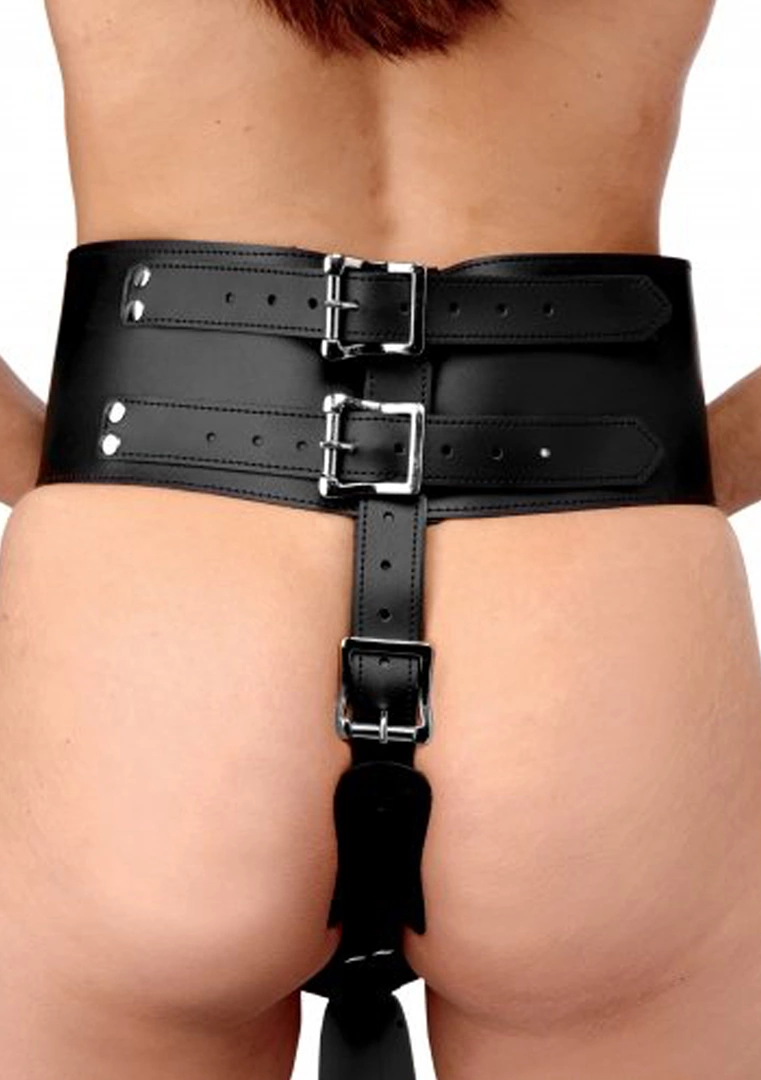 The XR Brands Forced Wand Holder Belt is an innovative harness system engineered for secure and versatile positioning of massage devices. Designed to accommodate a wide range of body types, this model features highly adjustable waist and crotch straps, ensuring a customized fit for each user. The dedicated holder for massage wands is reinforced to maintain device stability during use, providing consistent hands-free operation.