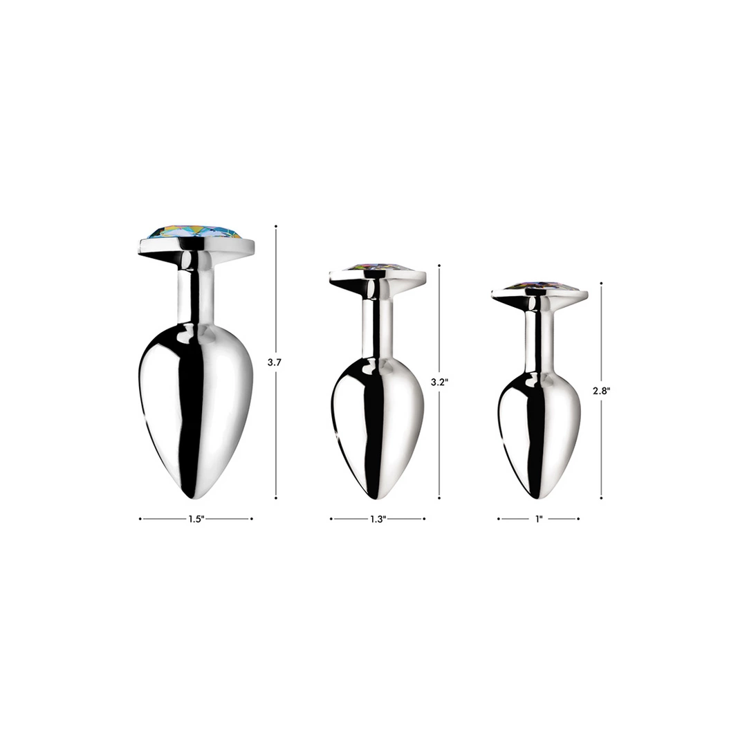 Introducing the XR Brands Rainbow Prism Aluminum Plug in Medium size – a premium accessory designed to combine functionality with vibrant aesthetics. This model features a beautifully faceted, multicolor gem at the base, adding a striking visual accent and making it a standout piece in any collection.